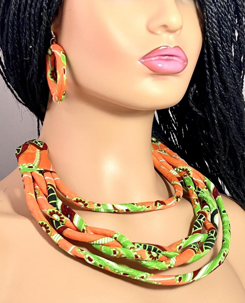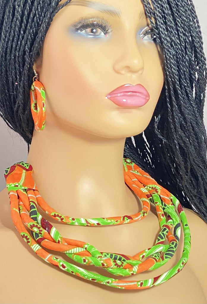 The African print is beautifully styled into these statement pieces, both necklace and earrings can be worn independently to accentuate your look on any occasion